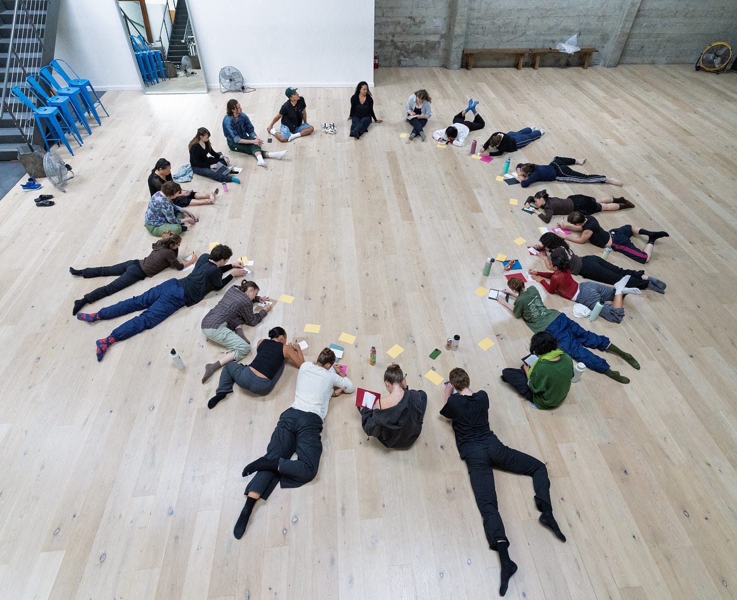 The first day of ttgsf, in its new home at City Dance Studios, with the inaugural cohort of students, faculty, and staff. The year always starts in a circle with introductions and writing down goals and intentions. Photo by Steve Disenhof